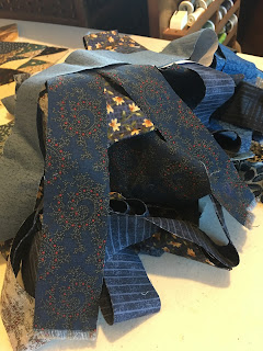 All I have done for this one is cut strips. All scrappy blue, I can't wait until their turn to go to the sewing machine table.